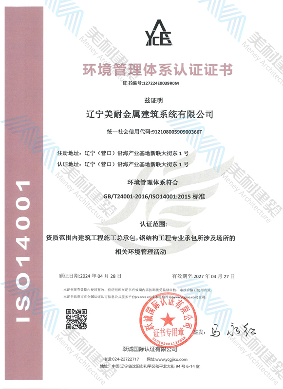 遼寧美耐金屬建筑系統(tǒng)有限公司位于遼寧(營(yíng)口)沿海產(chǎn)業(yè)基地,專(zhuān)注于預(yù)制金屬建筑系統(tǒng)領(lǐng)域,是一家集工業(yè)建筑設(shè)計(jì)、制作、施工及相關(guān)的技術(shù)咨詢(xún)與服務(wù)為一體的綜合性服務(wù)企業(yè)。作為國(guó)家鋼結(jié)構(gòu)協(xié)會(huì)會(huì)員、中國(guó)建筑金屬結(jié)構(gòu)協(xié)會(huì)會(huì)員單位與國(guó)家高新技術(shù)企業(yè),美耐建筑集建筑工程施工總承包、鋼結(jié)構(gòu)工程專(zhuān)業(yè)承包等多種資質(zhì)于一身,并擁有22項(xiàng)鋼結(jié)構(gòu)建筑領(lǐng)域?qū)@?項(xiàng)軟件著作權(quán)。
